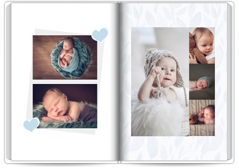 This delicate template in shades of blue is the perfect setting for the first moments of your child's life. Subtle ornaments and a charming bunny motif create a calm, harmonious whole that beautifully highlights baby photos. The template is perfect for both home photos and professional photo shoots. Thanks to the possibility of personalization, you can create a unique photo keepsake that will last for years.